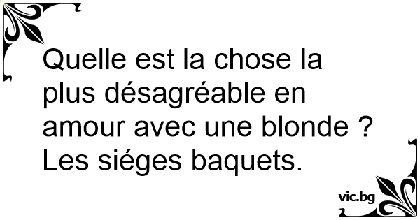 Quelle est la chose la plus désagréable en amour avec une blonde ? Les siéges baquets.