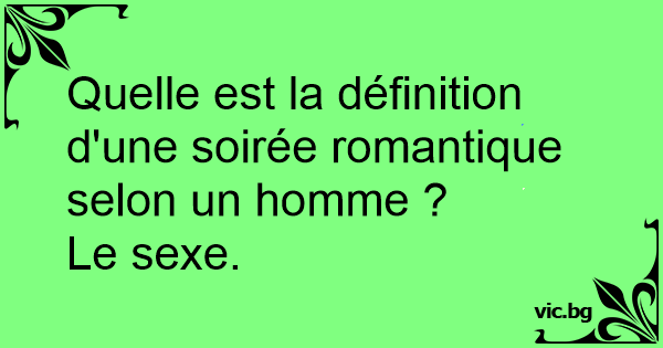 Quelle est la définition d'une soirée romantique selon un homme ?