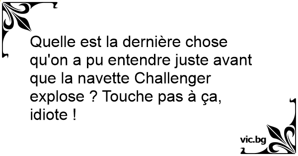 Quelle est la dernière chose qu'on a pu entendre juste avant que la navette Challenger explose ? Touche pas à ça, idiote !