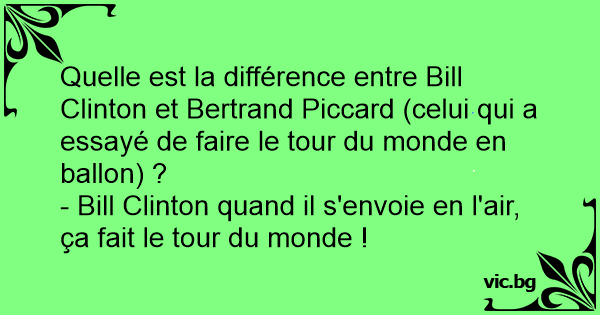 Quelle est la différence entre Bill Clinton et Bertrand Piccard (celui qui a essayé de faire le tour du monde en ballon) ?
