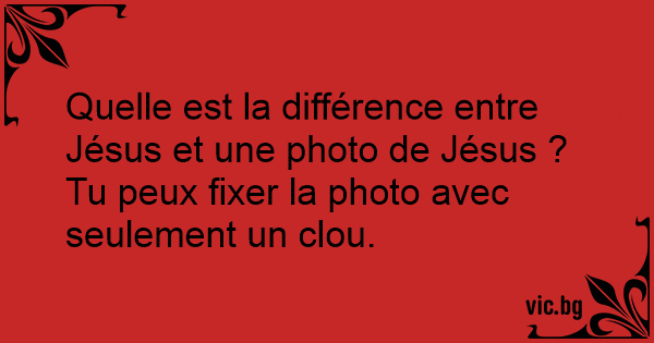 Savez vous la différence entre Jésus et une photo de Jésus ? La photo de Jésus ne prend qu'un seul clou pour l'accrocher