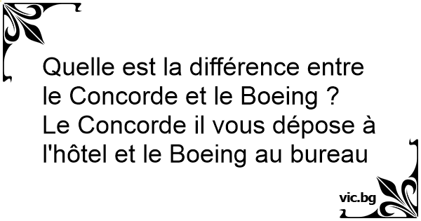 Le Concorde il vous dépose à l'hôtel et le Boeing au bureau