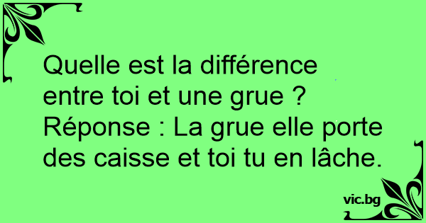 Réponse : La grue elle porte des caisse et toi tu en lâche.