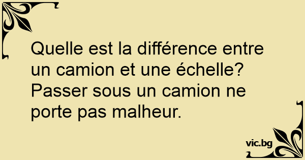 Quelle est la différence entre un camion et une échelle? Passer sous un camion ne porte pas malheur.
