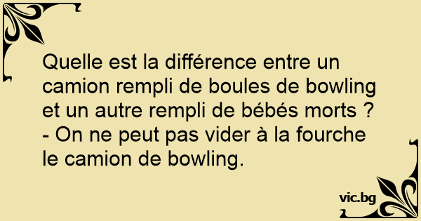 Quelle est la différence entre un camion rempli de boules de bowling et un autre rempli de bébés morts ?