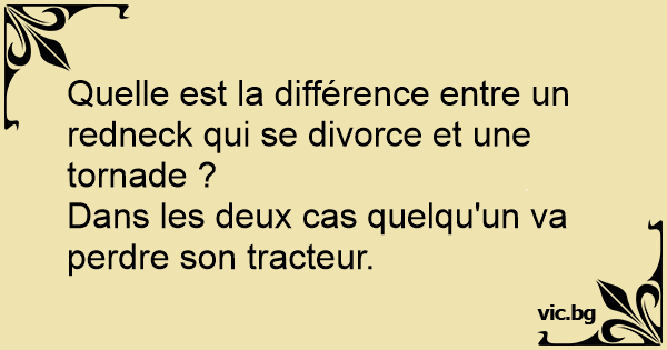 Quelle est la différence entre un redneck qui se divorce et une tornade ?