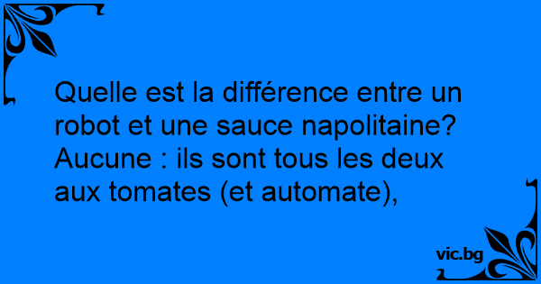 Quelle est la différence entre un robot et une sauce napolitaine? Aucune : ils sont tous les deux aux tomates (et automate),