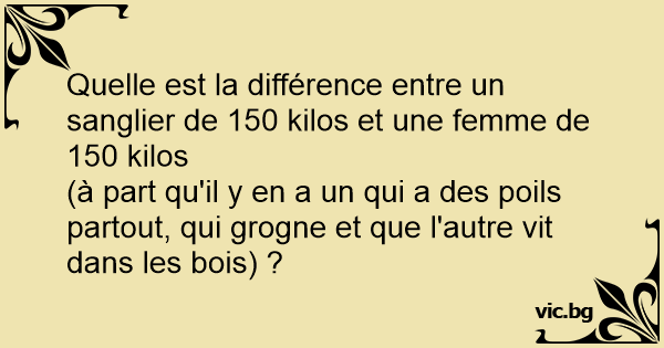 Quelle est la différence entre un sanglier de 150 kilos et une femme de 150 kilos