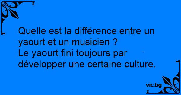Quelle est la différence entre un américain et un pot de yaourt ? Contrairement à l'américain, le yaourt, au bout d'un certain temps, finit par développer une certaine culture.