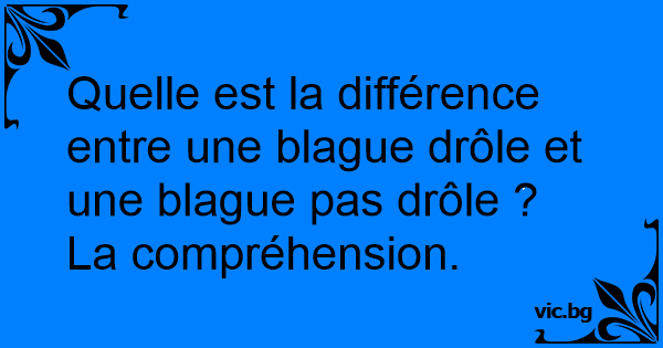 Quelle est la différence entre une blague drôle et une blague pas drôle ? La compréhension.