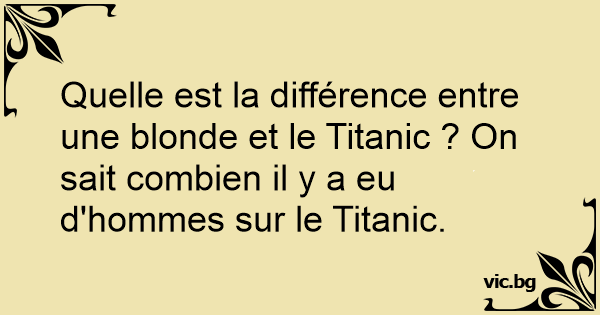 Quelle est la différence entre une blonde et le Titanic ? On sait combien il y a eu d'hommes sur le Titanic.