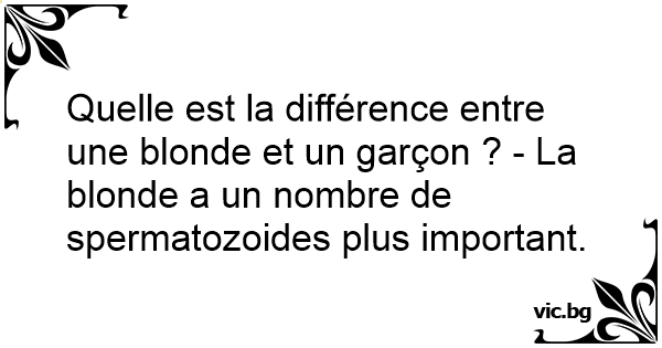 Quelle est la différence entre une blonde et un garçon ? - La blonde a un nombre de spermatozoides plus important.
