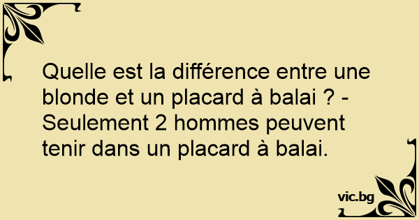 Quelle est la différence entre une blonde et un placard à balai ? - Seulement 2 hommes peuvent tenir dans un placard à balai.