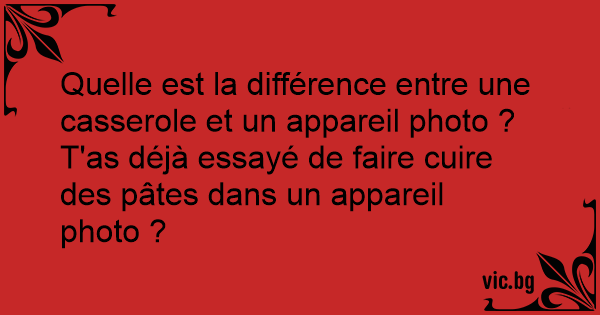 T'as déjà essayé de faire cuire des pâtes dans un appareil photo ?