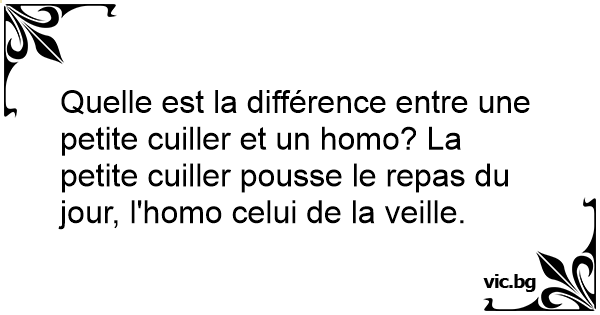 Quelle est la différence entre une petite cuiller et un hомо? La petite cuiller pousse le repas du jour, l'hомо celui de la veille.