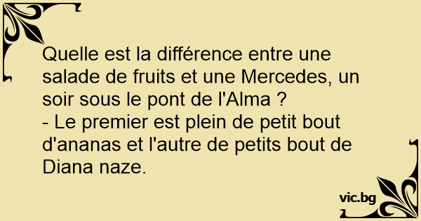 Quelle est la différence entre une salade de fruits et une Mercedes, un soir sous le pont de l'Alma ?