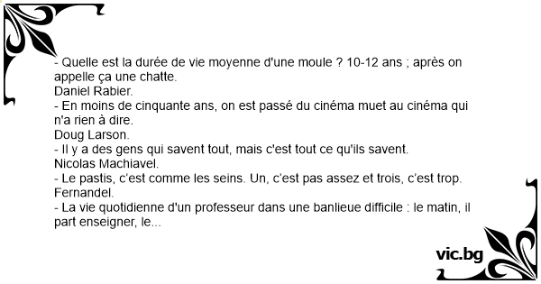 - Quelle est la durée de vie moyenne d'une moule ? 10-12 ans ; après on appelle ça une сhатте.