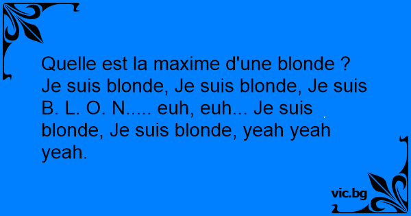 Je suis blonde, Je suis blonde, Je suis B. L. O. N..... euh, euh... Je suis blonde, Je suis blonde, yeah yeah yeah.