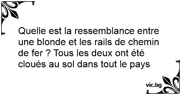Quelle est la ressemblance entre une blonde et les rails de chemin de fer ? Tous les deux ont été cloués au sol dans tout le pays
