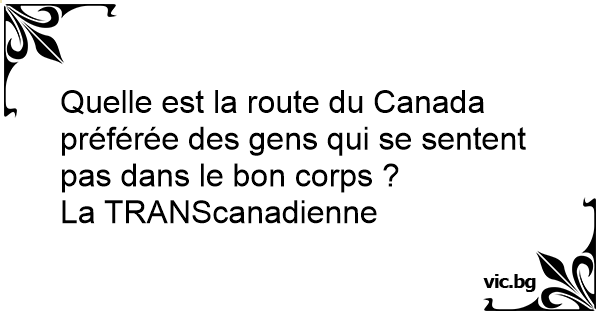 Quelle est la route du Canada préférée des gens qui se sentent pas dans le bon corps ?