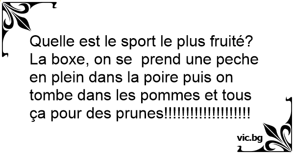 La boxe, on se prend une peche en plein dans la poire puis on tombe dans les pommes et tous ça pour des prunes!!!!!!!!!!!!!!!!!!!!