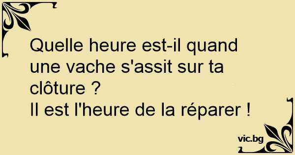 Quelle heure est-il quand une vache s'assit sur ta clôture ?