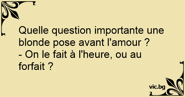 Quelle question importante une blonde pose avant l'amour ?
