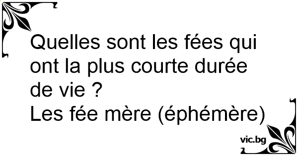Quelles sont les fées qui ont la plus courte durée de vie ?