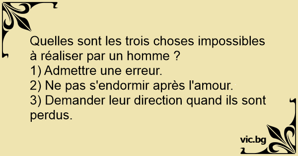 Quelles sont les trois choses impossibles à réaliser par un homme ?