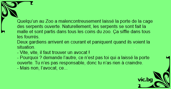 - Mais non, l’avocat, ce n’est pas pour moi, c’est pour les serpents : il nous faut quelqu’un qui comprenne leur langage !