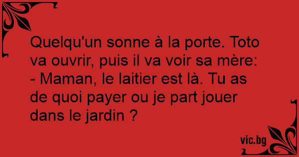 - Maman, le laitier est là. Tu as de quoi payer ou je part jouer dans le jardin ?