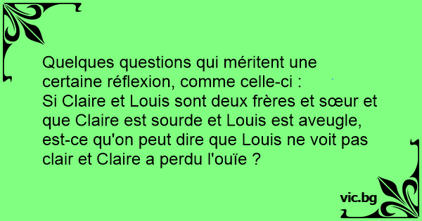 Si Claire et Louis sont deux frères et sœur et que Claire est sourde et Louis est aveugle, est-ce qu'on peut dire que Louis ne voit pas clair et Claire a perdu l'ouïe ?