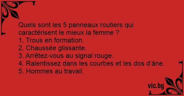 Quels sont les 5 panneaux routiers qui caractérisent le mieux la femme ?