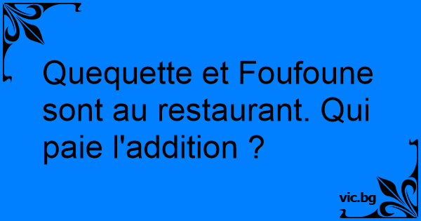 Quequette et Foufoune sont au restaurant. Qui paie l'addition ?