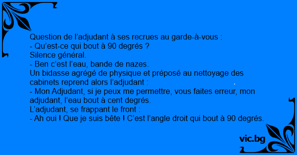 - Mon Adjudant, si je peux me permettre, vous faites erreur, mon adjudant, l’eau bout à cent degrés.