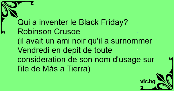 (il avait un ami noir qu'il a surnommer Vendredi en depit de toute consideration de son nom d'usage sur l'ile de Más a Tierra)
