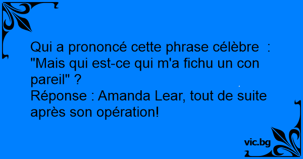 "Mais qui est-ce qui m'a fichu un соn pareil" ?
