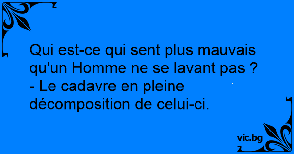 Qui est-ce qui sent plus mauvais qu'un Homme ne se lavant pas ?