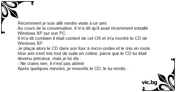 Il m'a dit combien il était content de cet OS et m'a montré le CD de Windows XP.