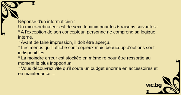 Un micro-ordinateur est de sexe féminin pour les 5 raisons suivantes :