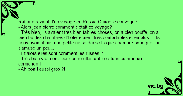 - Très bien, ils avaient très bien fait les choses, on a bien bouffé, on a bien bu, les chambres d'hôtel étaient très confortables et en plus ... ils nous avaient mis une petite russe dans chaque chambre pour que l'on s'amuse un peu...