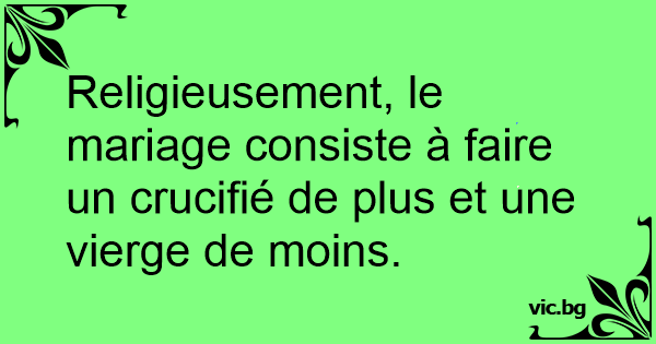 Religieusement, le mariage consiste à faire un crucifié de plus et une vierge de moins.