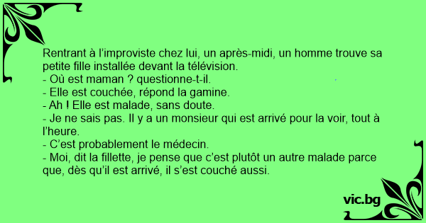 - Moi, dit la fillette, je pense que c’est plutôt un autre malade parce que, dès qu’il est arrivé, il s’est couché aussi.
