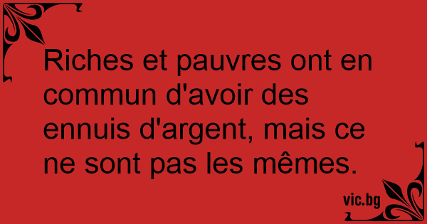 Riches et pauvres ont en commun d'avoir des ennuis d'argent, mais ce ne sont pas les mêmes.