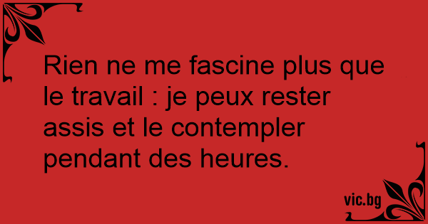 Rien ne me fascine plus que le travail : je peux rester assis et le contempler pendant des heures.