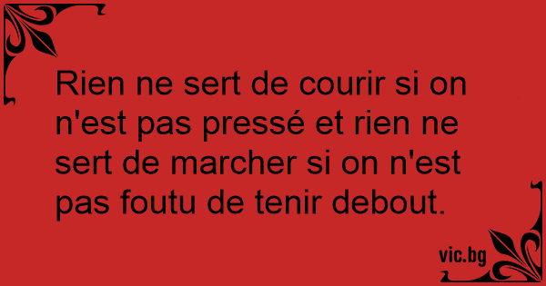 Rien ne sert de courir si on n'est pas pressé et rien ne sert de marcher si on n'est pas foutu de tenir debout.