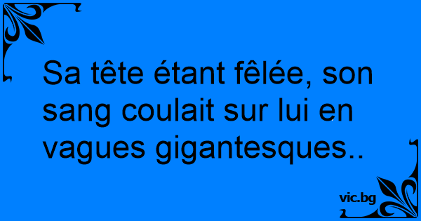 Sa tête étant fêlée, son sang coulait sur lui en vagues gigantesques..