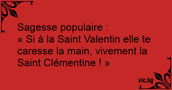« Si à la Sаinт Valentin elle te caresse la main, vivement la Sаinт Clémentine ! »