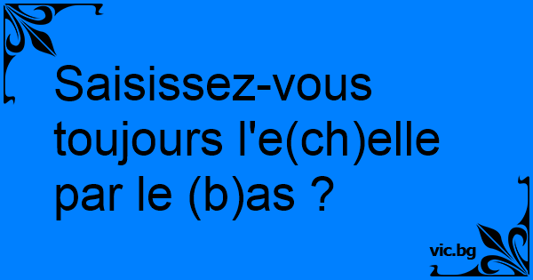 Saisissez-vous toujours l'e(ch)elle par le (b)as ?