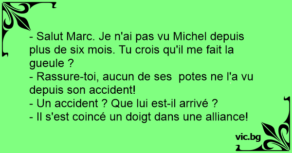 - Salut Marc. Je n'ai pas vu Michel depuis plus de six mois. Tu crois qu'il me fait la gueule ?